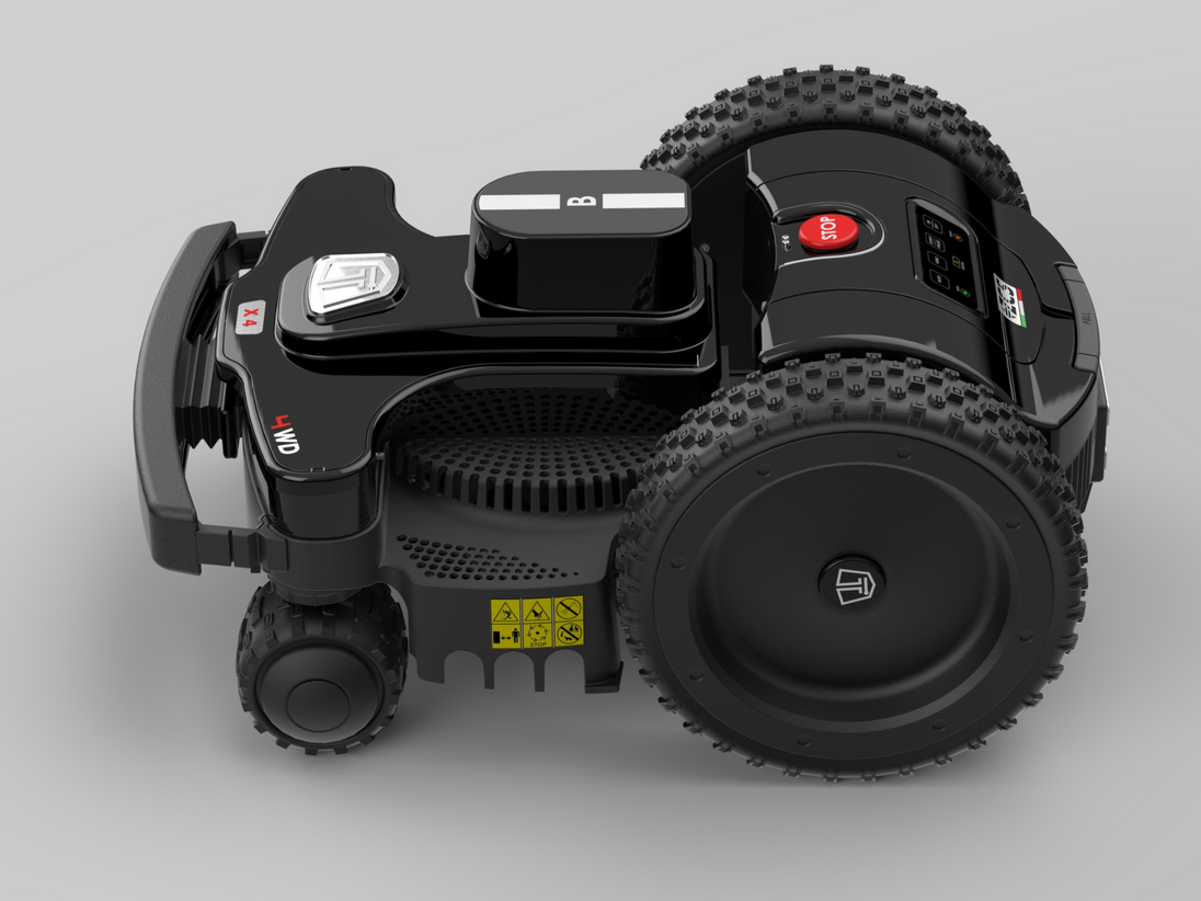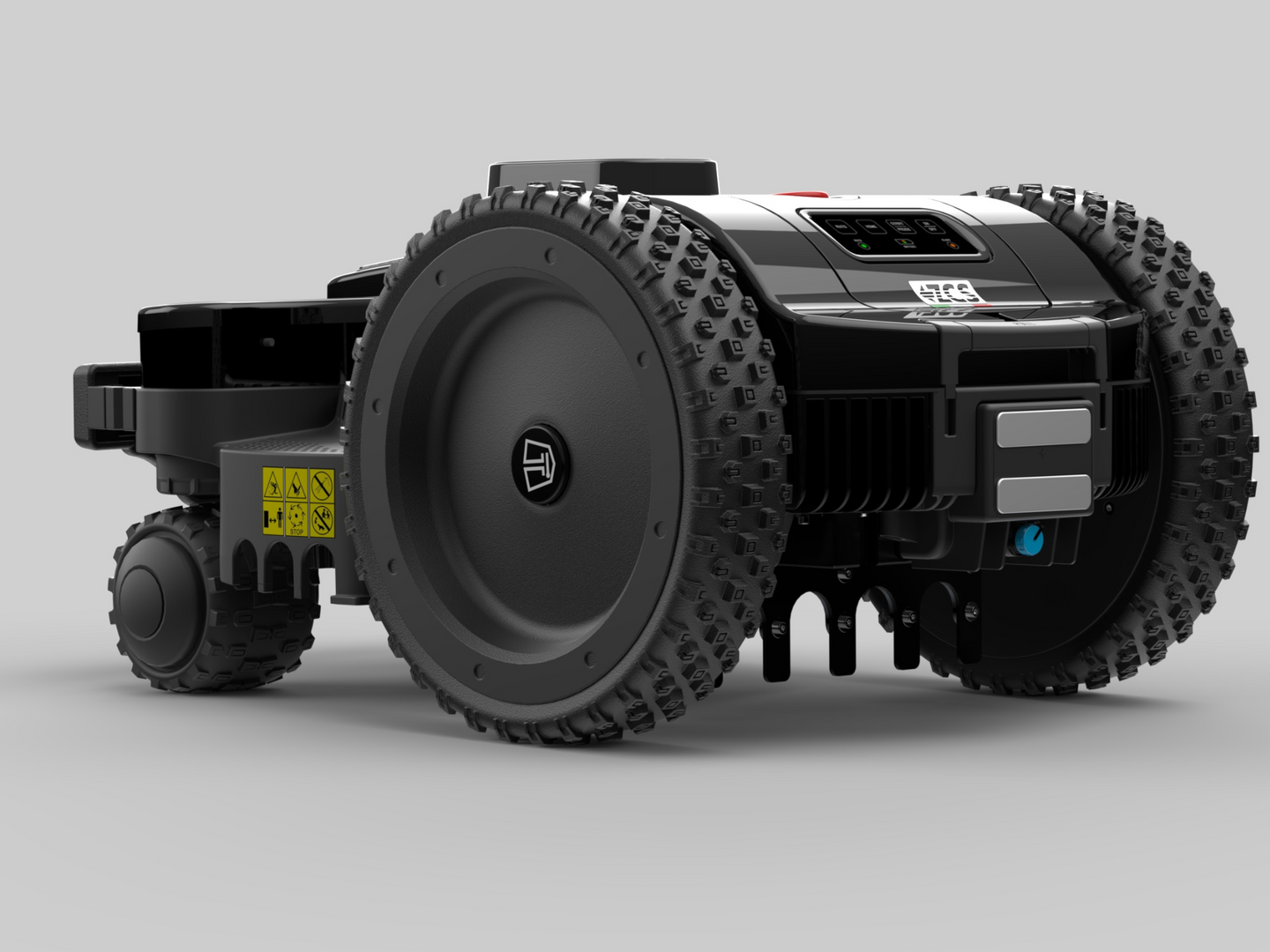 Echter Allradantrieb: Das Herzstück des BX4 4WD sind seine aktiv angetriebenen und gelenkten Vorderräder. In Kombination mit den Hinterrädern ergibt sich ein echter Allradantrieb, der diesem Mähroboter ungeahnte Fähigkeiten verleiht.