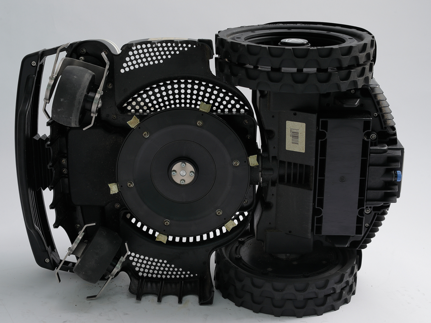 Jeder der Motoren (Klinge und Räder) wird während des Betriebs ständig überwacht, um jede Situation zu erkennen, die zur Überhitzung führen kann. Falls ein Überstrom im Rädermotor auftritt, versucht der Roboter in die entgegengesetzte Richtung zu fahren. Wenn der Überstrom andauert, stoppt der Roboter und zeigt den Fehler an. Wenn der Überstrom am Klingenmotor auftritt, gibt es zwei Interventionsstufen. Fallen die Parameter unter die erste Stufe, führt der Roboter Manöver aus, um die Schneidklinge frei zu bekommen. Fällt der Überstrom unter die Schutzstufe, hält der Roboter an und meldet den Motorfehler.