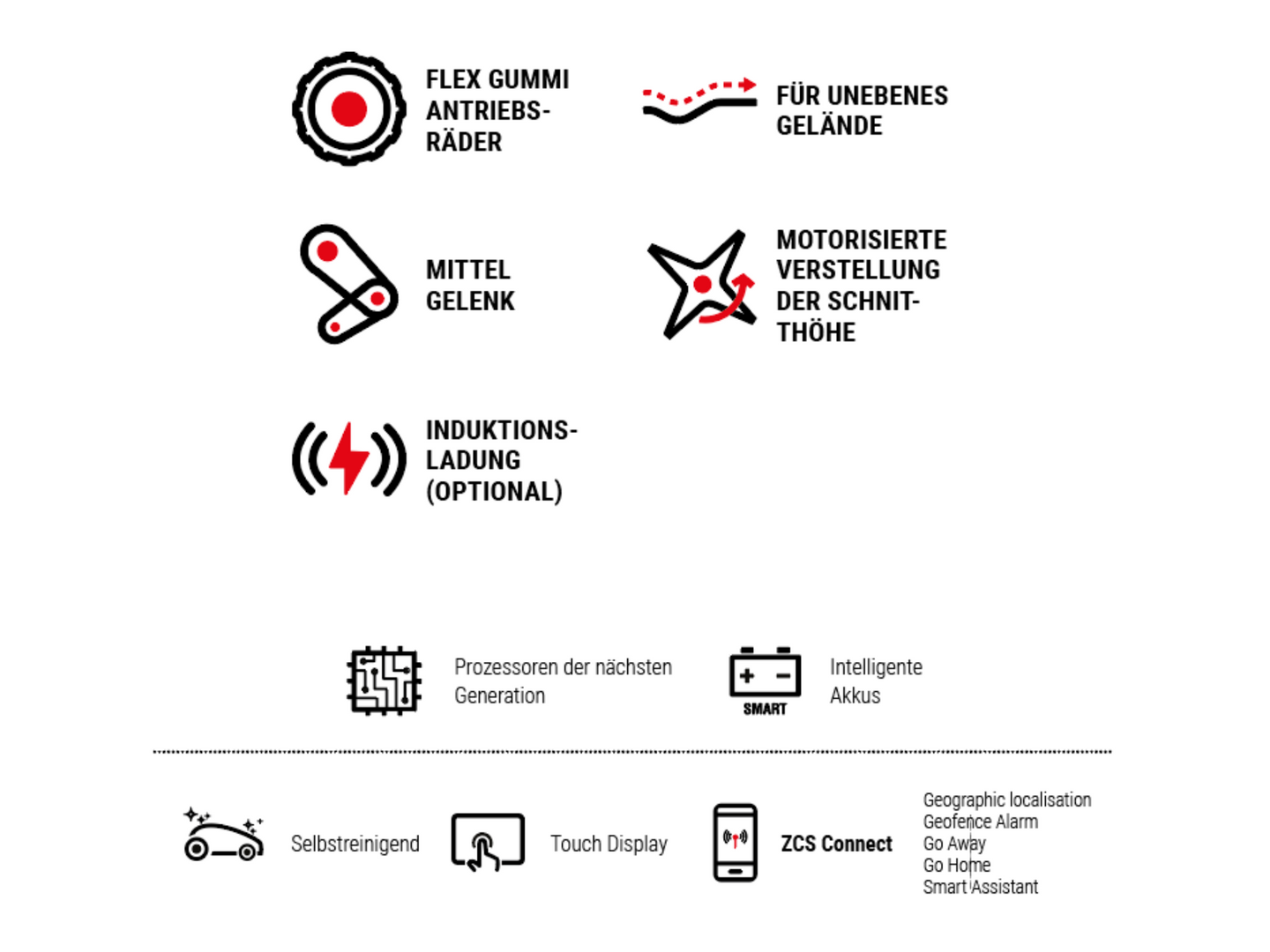 **Das ZCS Connect Modul ist ein Bauteil welches dem Roboter die Kommunikation über das GSM Netz (Multi-Netz eSIM) und die Nutzung von GPS Daten ermöglicht. Die GSM Funktionen dienen zum Erhalt von Status Mitteilungen in die Smartphone App TECH Remote (z.B. Arbeitsstatus und Position) sowie dem Senden einfacher Befehle (Mähen bis, Laden bis usw.). Die GPS Funktionen dienen hauptsächlich der Positionsbestimmung (Geofence Diebstahlsicherung) und zur Erstellung einer Karte der Mähfläche, was die Leistung optimiert. In den Modellen Tech S6, Tech L8, Tech L20 sowie Next Tech LX2 ZR und LX2 ZR EVO sind nur die Funktionen des GSM sowie der Geofence Diebstahlschutz verfügbar.