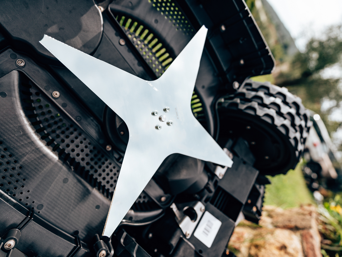 Präzision im Großformat: Das 36 cm breite 4-Klingen-Messer garantiert einen makellosen und gleichmäßigen Schnitt, selbst bei dichtem und hohem Gras. Erleben Sie Perfektion auf jedem Quadratmeter Ihres Gartens.